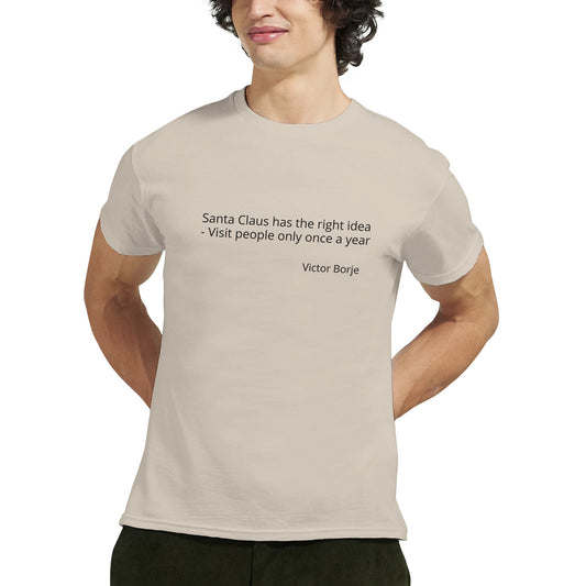 Heavyweight Unisex Crewneck T-shirt - Victor Borje - Santa Claus has the right idea - Visit people only once a year