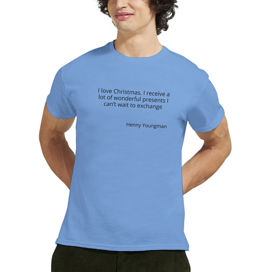 Heavyweight Unisex Crewneck T-shirt - Henny Youngman - I love Christmas. I receive a lot of wonderful presents I can’t wait to exchange